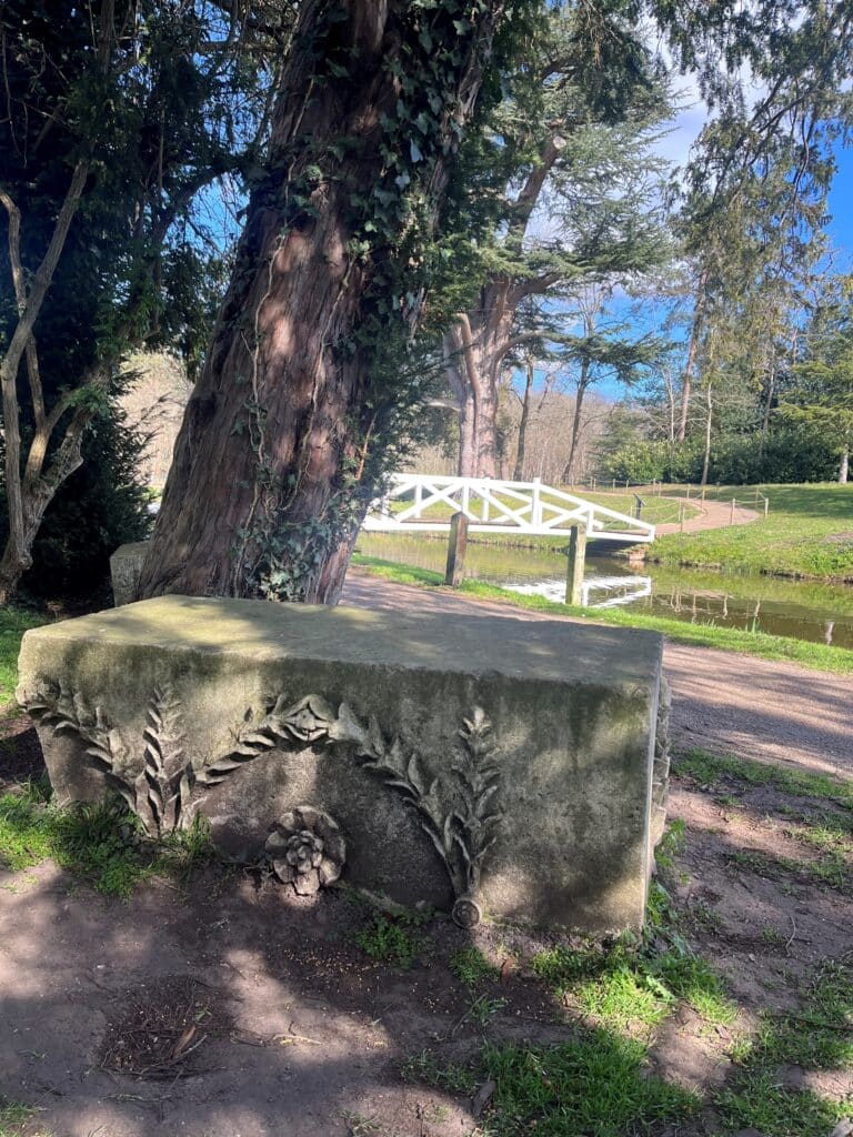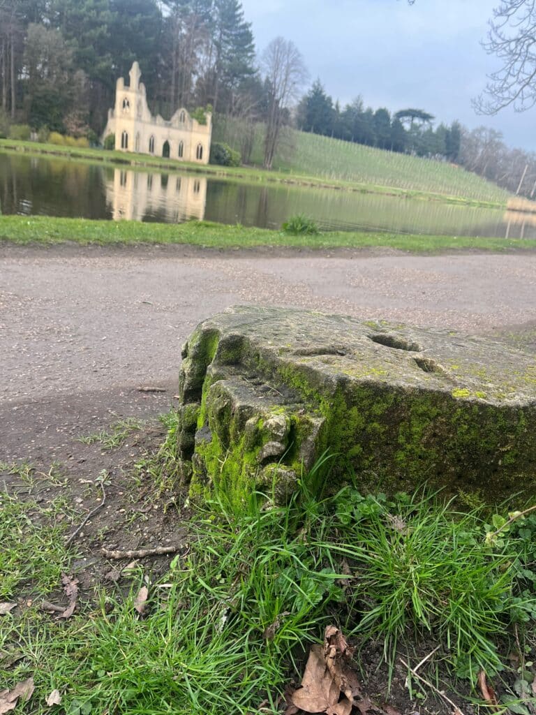 He replaced the stunning northern pavilion with bland servants’ quarters. The grand portico was destroyed in favour of a veranda and the elegantly carved stone blocks that comprised the frieze were taken and scattered haphazardly around the park. Today, if you wander around the Serpentine Lake, you will notice these heavy blocks, remnants of Hopkins’ original vision. Sadly, their placement is random, often backwards or upside down. Leaf and Shaw had such little regard for the stones that they didn’t consider their engravings to be worthy of admiration. In a very recent discovery, some pot shards and grotto debris were found in Painshill’s Kitchen Garden. A section of one of Hopkins’ column capitals was hiding amongst the fragments. See if you can spot it next time you’re in the Kitchen Garden.